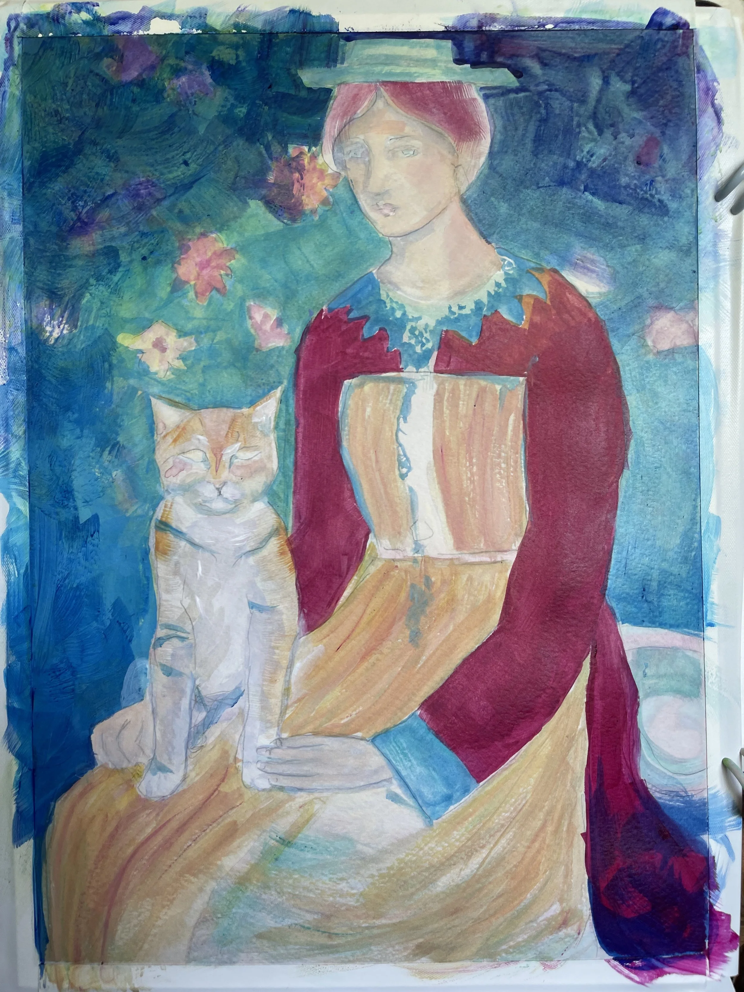 Maybe she’s a little sad. Maybe lonely. But she has a cat purring on her lap, and that makes everything a little better.